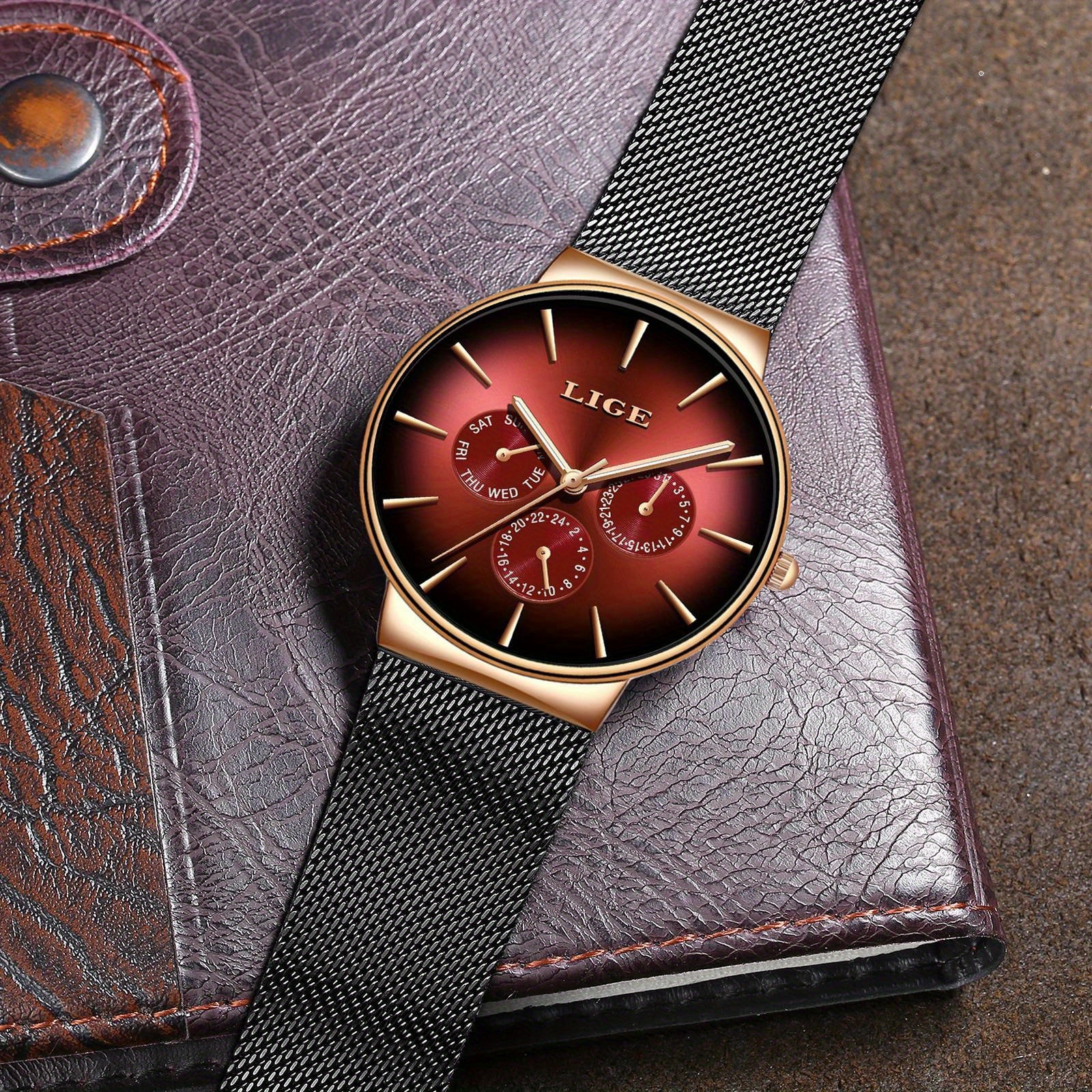 Men’s Ultra-Thin Luxury Mesh Steel Watch – Multifunction Quartz, 24‑Hour Subdial, Day/Date Calendar | Elegant Business & Casual Gift
